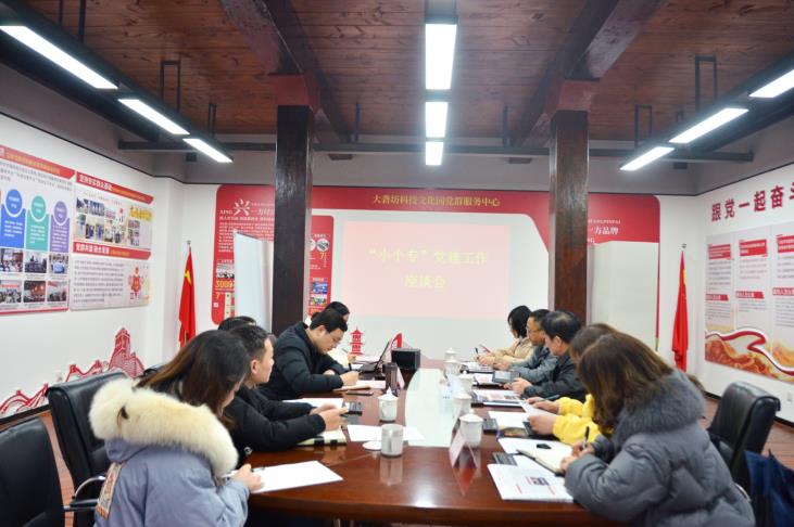 12月10日,市市場監督管理局個體私營經濟監督管理科負責人、市小個專黨建工作辦公室主任邾立華一行來園開展“小個專”黨建工作評審會,大礱坊科技文化園黨委書記卞國琛、第一支部書記褚雪敏作黨建工作匯報。